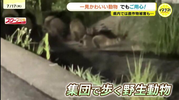 おととい、安芸高田市向原町で撮影された映像です。住宅地を集団で歩く野生動物の正体は…