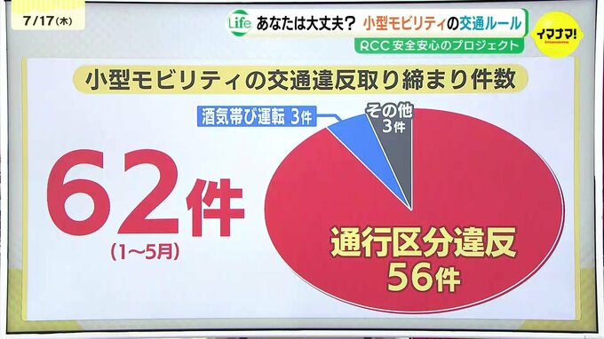 県警によりますと、小型モビリティの取り締まり件数は5月末までで62件あったということです。