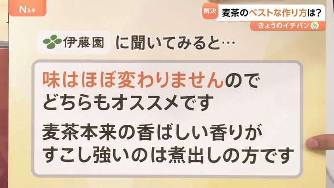 伊藤園に聞いたところ「味はほぼ変わりませんので、どちらもオススメです。麦茶本来の香ばしい香りがすこし強いのは煮出しの方です」ということでした。