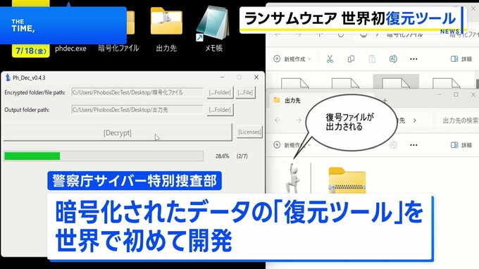 警察庁はきのう、特定の身代金要求型ウイルス「ランサムウェア」によって暗号化されたデータを復元するツールを世界で初めて開発したと発表しました。企業の機密データを暗号化する身代金要求型ランサムウェア「Pho…