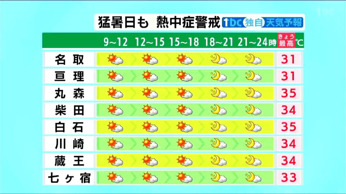 夜も気温があまり下がらず、19日の朝の最低気温は23℃と蒸し暑くなりそうで、こまめな水分補給など、体調管理に十分注意が必要です。
