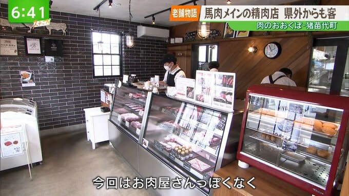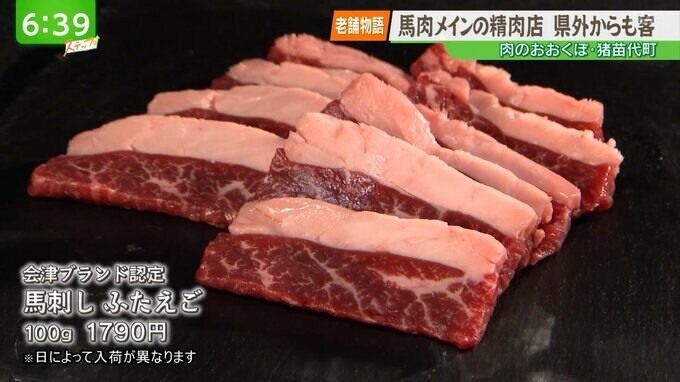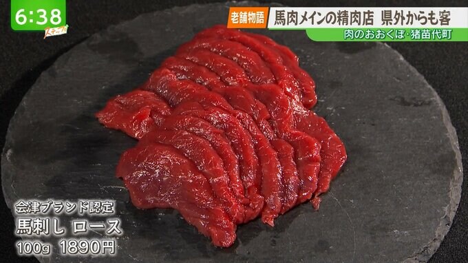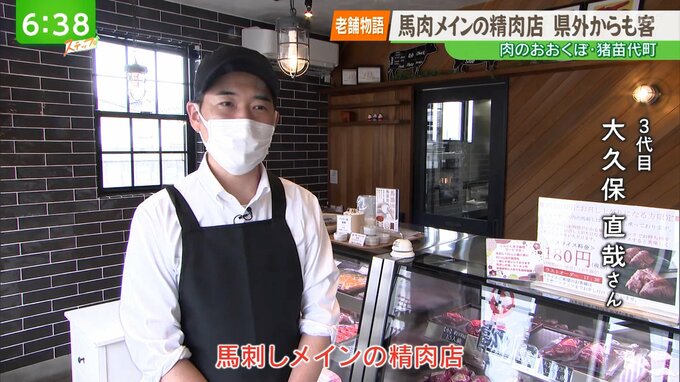 --大久保直哉さん(3代目)「こちらは馬刺しがメインの精肉店になります。会津地方は馬刺しを食べる文化がありますので、それを中心に扱っております。」