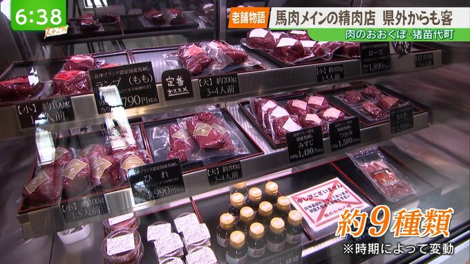 実は馬肉をメインに扱う精肉店『肉のおおくぼ』。今の時期は馬肉だけで9種類ほどの部位が店頭に並びます。