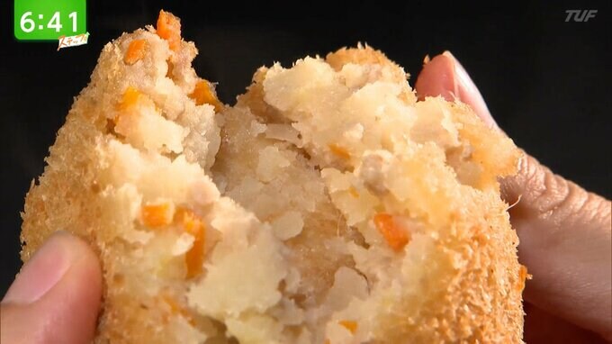 --大久保直哉さん(3代目)「創業当時から味も変わらないコロッケです。メークインを使ってまして、仕上がりがしっとりとした昔ながらのお肉屋さんのコロッケというような感じですかね。」