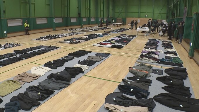 当日道端に残された持ち主不明の衣服や靴、スマホなど860点(11月1日時点)が並べられていた。