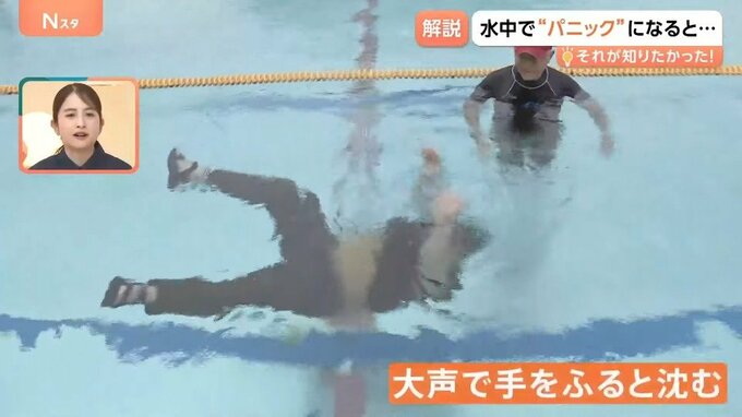 普通に浮いている状態で「助けて」と声を出し、手を振ってしまうと、本当に一瞬で沈んでしまいます。