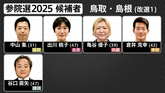 7月20日に投開票が迫った参議員選挙2025。選挙区、比例代表のあわせて522人が立候補し、議席を争います。鳥取・島根、岡山、広島、山口の候補者一覧です。