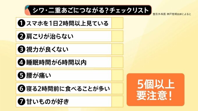 シワ・二重アゴにつながるかどうか、チェックしてみましょう。