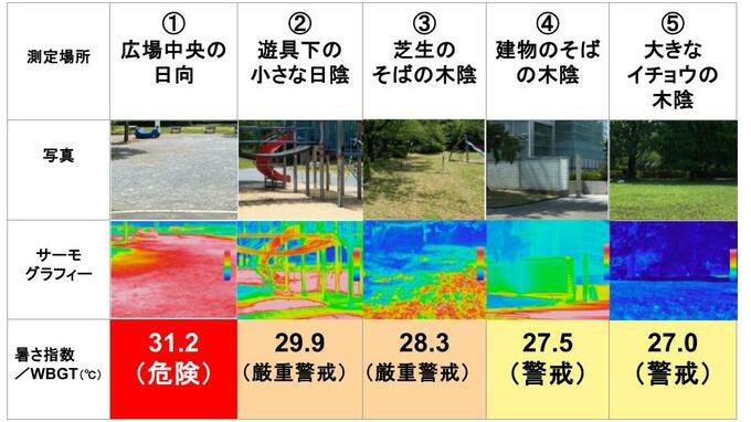 その結果、日向と最も涼しい日陰では暑さ指数で4.2もの差があり、「いい日陰」は子どもの熱中症リスクを下げる可能性があるということになりました。