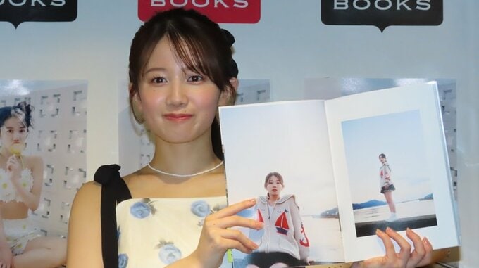 写真集の出来栄えについて「1億点」と元気よく答えると、見どころについて、 “10代に撮っているので、10代にしか出せない雰囲気があると思っていたので、写真に残っているのと、皆さんが読んだ時に存在しない記憶を呼び起こさせるような「エモい」が詰まっているので、そこを楽しんでくれたら” とアピールしました。