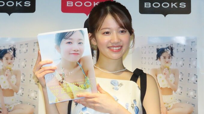 AKB48の正鋳真優さんが初の写真集『AKB48 正鋳真優 1st写真集「付き合ってください」』の出版記念会見に登場しました。