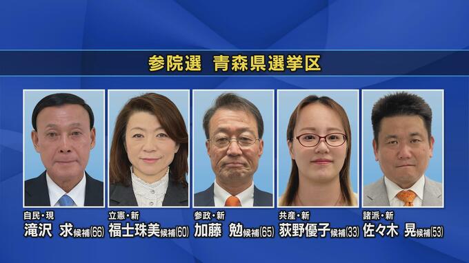 7月3日に公示された参議院議員選挙・青森県選挙区には、こちらの5人が立候補しています。