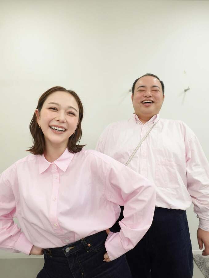 村重さんは「小野ふみやのタレント村重です!」といつもの調子で投稿。「小野ふみや」さんとは村重さんのマネージャーで「たまたま私服が被った日。」と、二人ともピンクの襟シャツに黒のパンツが見事にカブっており、二人とも笑顔でポーズしています。