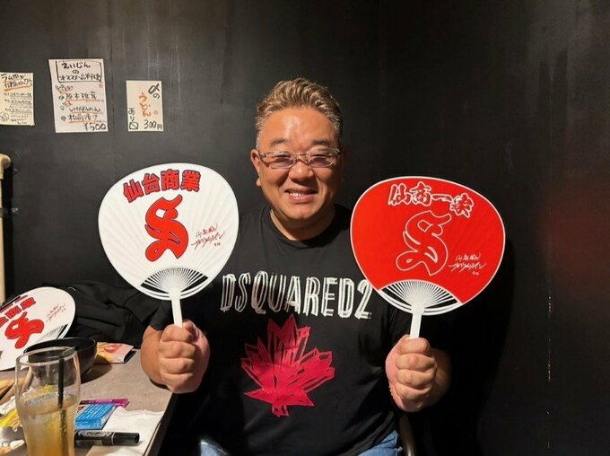 続けて「色合いや文言を何度も検討しました。私学の仙台育英のウチワをいつも羨ましく感じていました。だから、作りました。」と、明かしました。