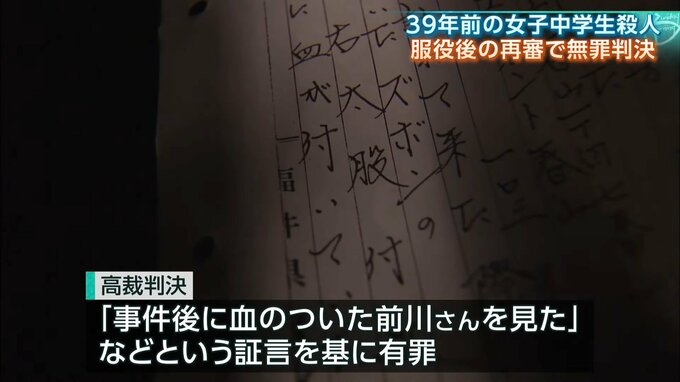 39年前の女子中学生殺害事件 服役後の再審で無罪判決