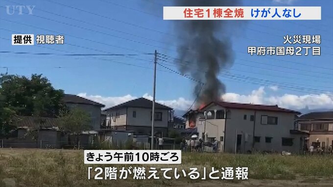 20日午前10時ごろ甲府市国母2丁目で「2階が燃えている」とこの家に住む人から通報がありました。