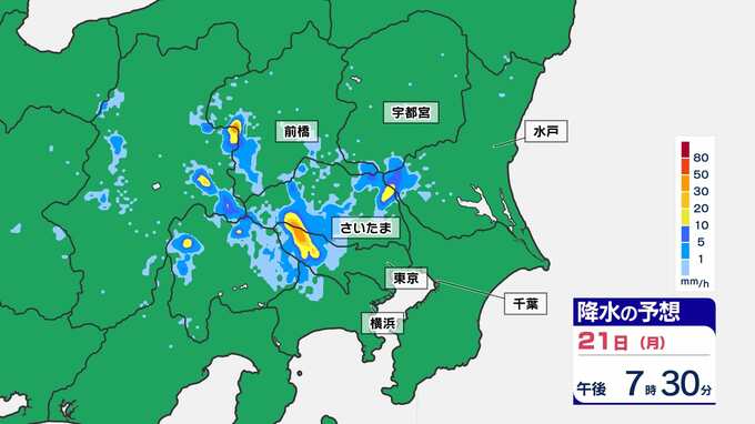 【東京首都圏 ゲリラ雷雨に注意】3連休最終日 非常に激しい雨のおそれ 雷の確率も高い【雨・発雷確率シミュレーション・警報の可能性がある地域】気象庁発表を詳しく 東京・神奈川・埼玉・千葉・群馬・栃木・茨城「大雨に関する気象情報 」 南日本放送 2025年7月21日(月) 14:00 国内 天気