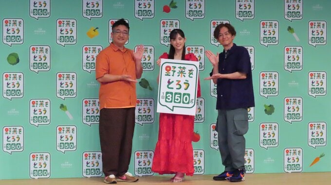 タレントの松村沙友里さんがお笑いコンビ「なすなかにし」の那須晃行さんと中西茂樹さんが「野菜をとろうフォーラム2025」に登場しました。