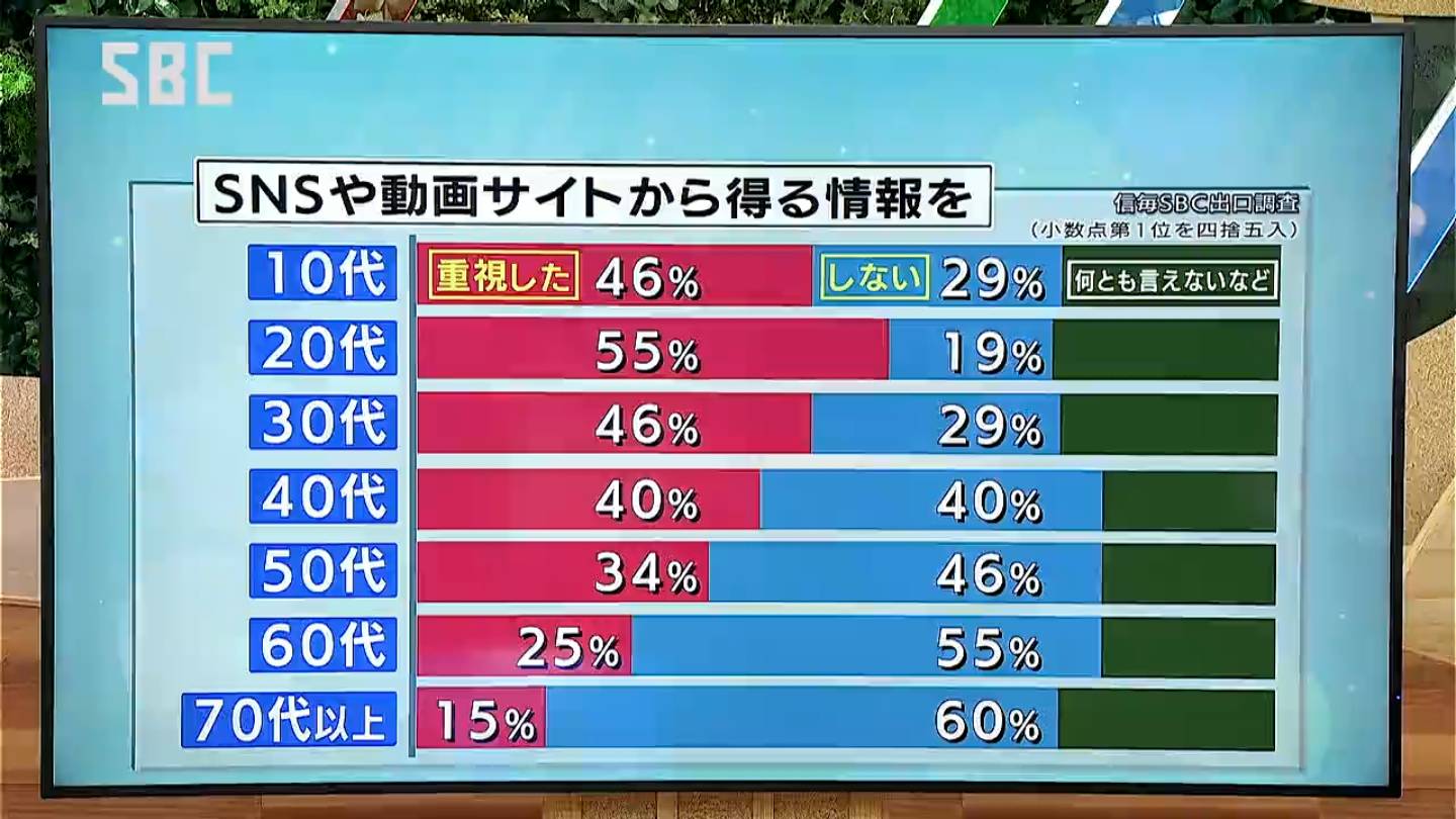 投票先を決める際にSNSなどの情報を「重視した」と答えた人は10代から30代では「重視しなかった」とした人を上回りました。