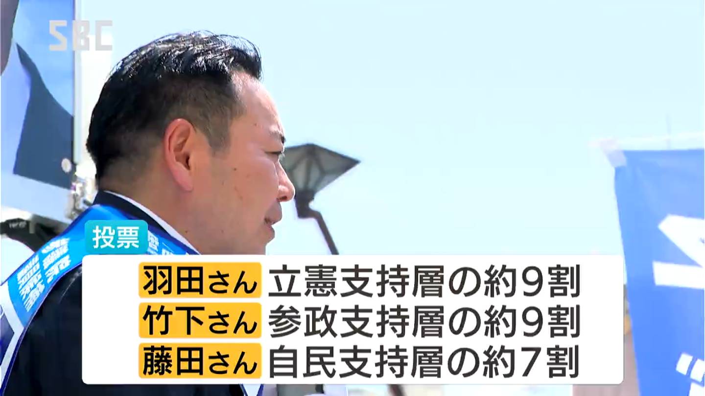 再選を果たした羽田さんは立憲支持層のおよそ9割、竹下さんも参政支持層のおよそ9割を固めたのに対し、藤田さんに投票したのは自民支持層の7割ほどにとどまりました。