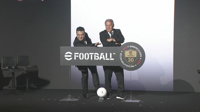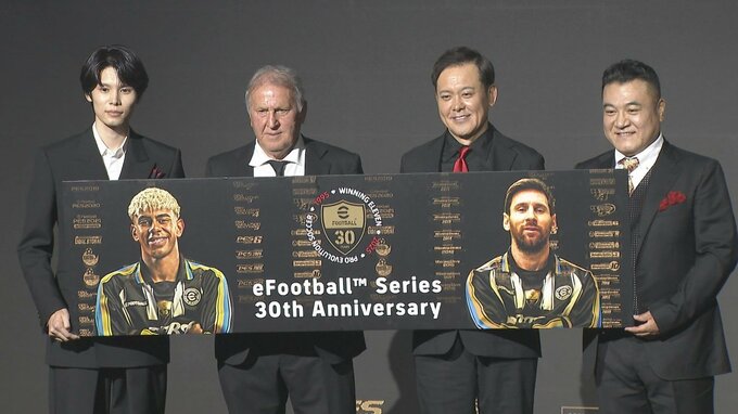 俳優の萩原利久さん、お笑い芸人の有田哲平さん、山崎弘也さんが、「eFootball™」シリーズの第1作「Jリーグ実況ウイニングイレブン」が誕生してから30周年を記念したイベント「eFootball™︎ シリーズ30周年記念発表会」に登壇しました。