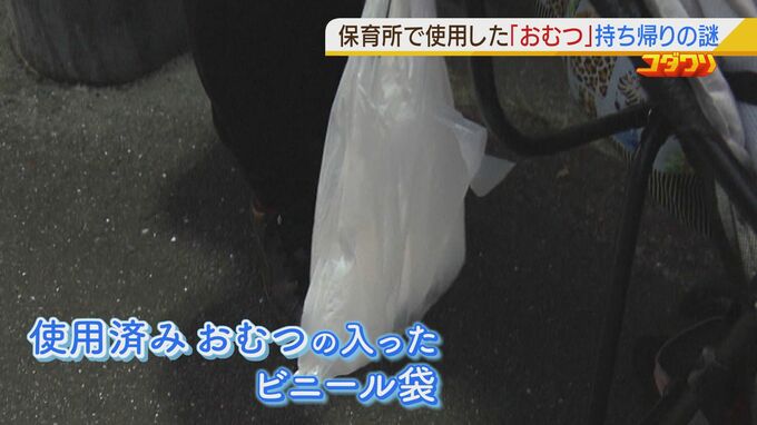 お迎え後の荷物を見てみると、使用済みおむつの入ったビニール袋がありました。