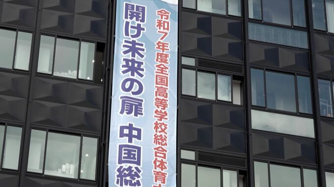 いよいよあす(23日)インターハイ=全国高校総体が始まります。岡山県内でもバレーボールやソフトボールなどの競技が開催されることをPRするため、岡山県庁に懸垂幕が掲げられました。「開け未来の扉 中国総体 2025…