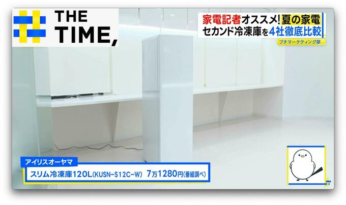 まずは『アイリスオーヤマ』の「スリム冷凍庫 120L KUSN-S12C-W(」(7万1280円※番組調べ)