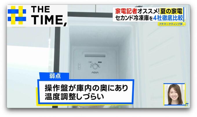 続いてのセカンド冷凍庫は、『AQUA』の「スリムフリーザーシリーズ AQF-SFA14R」(7万1500円※番組調べ)。