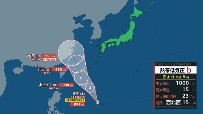 熱帯低気圧は今後24時間以内に台風となる見込みで、