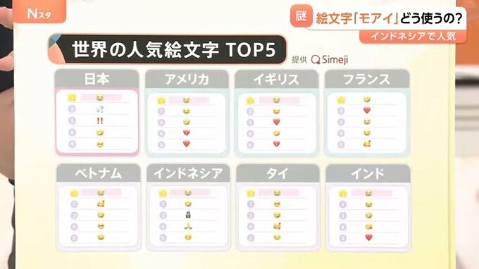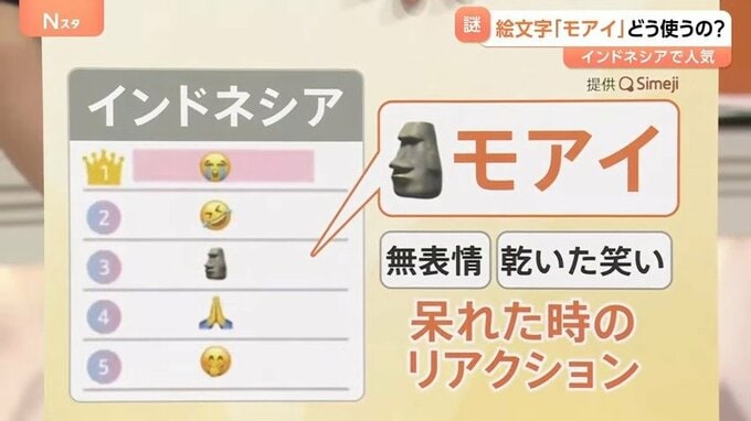 インドネシアのTOP5に「モアイ」の絵文字がランクインしていました。