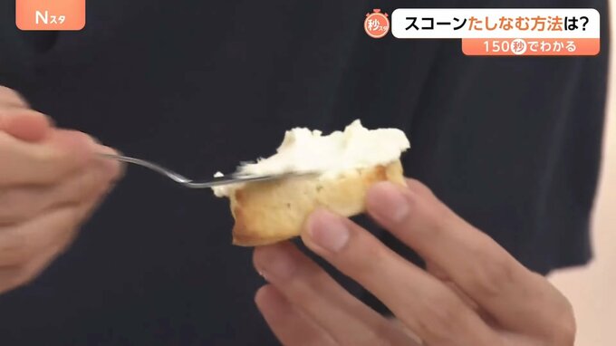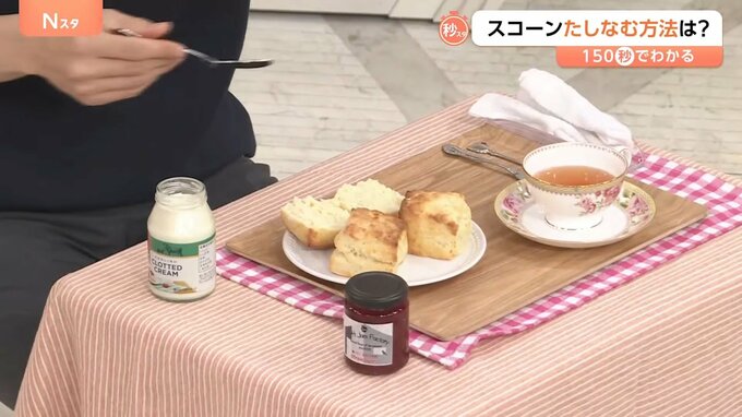 本場のスコーンの食べ方を出水キャスターがレクチャー