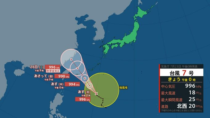 進行方向、速さ…西北西 15 km/h (7 kt)
