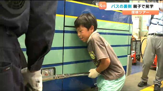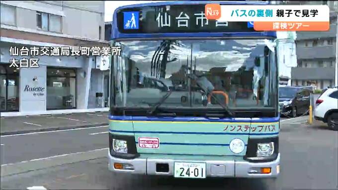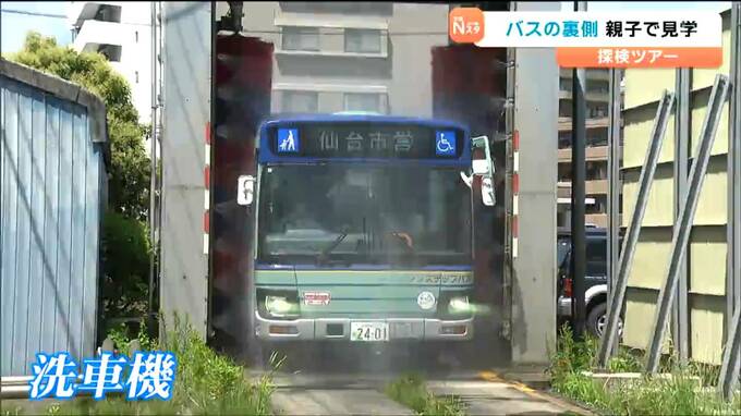 バスに関心を持ってもらおうと23日、仙台で交通局の整備工場などを親子で見学するツアーが行われました。