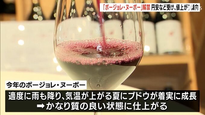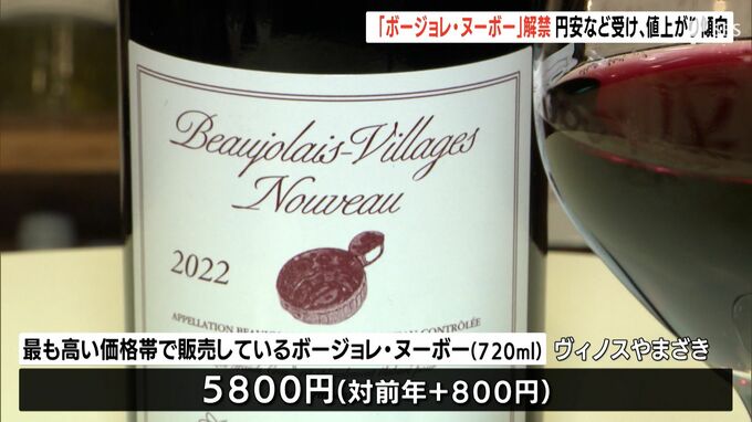 ただ、2022年は円安と物流費の高騰を受け、全般的に2021年より値上がりしているということです。「ヴィノスやまざき」で最も高い価格帯で販売している720㎖のボージョレ・ヌーボーが5800円。2021年より800円ほど値上がりしているということです。