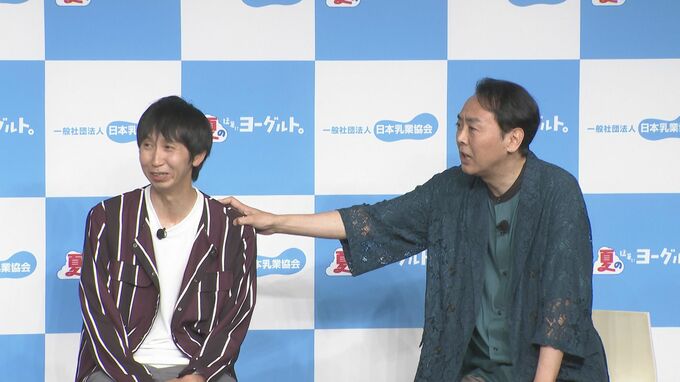 お笑いコンビ・アンガールズの田中卓志さん、山根良顕さん、元プロサッカー選手の内田篤人さん、フリーアナウンサーの鷲見玲奈さんが、「夏の猛暑に、ヨーグルト。」キックオフイベントに登壇しました。