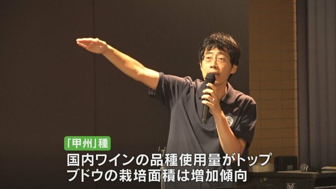 またセミナーも開催され、専門家が「甲州」種が世界で注目され始め、国内ワインの品種としての使用量がトップでここ数年甲州ブドウの栽培面積が増加傾向になっていると説明していました。