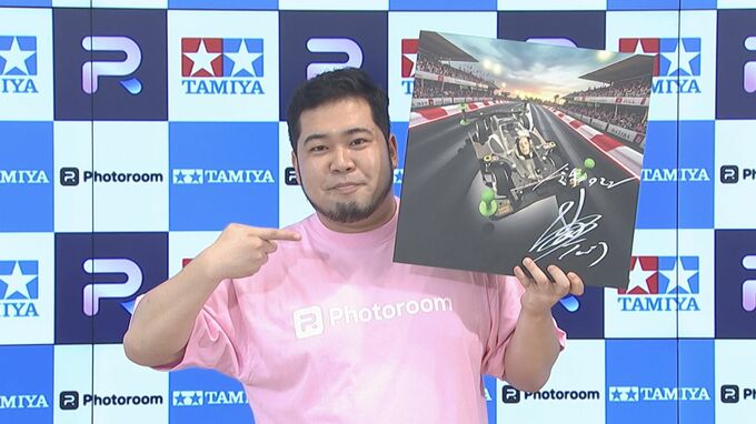 写真加工アプリ「Photoroom」とプラモデルメーカー「TAMIYA」がコラボしたイベントで、「TAMIYA」のミニ四駆を撮影し、「Photoroom」で背景加工した写真を公募。表彰式が行われました。