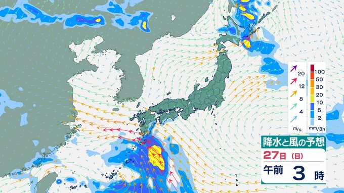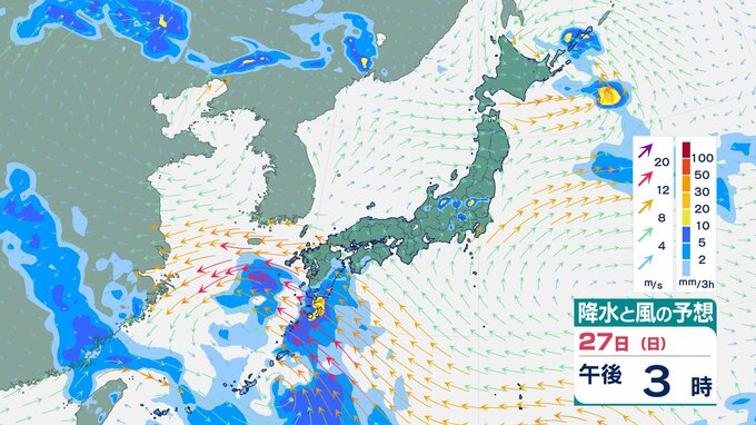 【トリプル台風】台風7号は25日未明にかけて沖縄地方に最接近の見込み【雨風シミュレーション】うねりを伴う高波に警戒を チューリップテレビ 2025年7月24日(木) 17:55 国内 天気 27日(日)の雨と風のシミュレーション