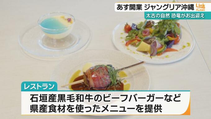 レストランでは、石垣産黒毛和牛のビーフバーガーなど、県産食材を使ったメニューが味わえます。ジャングリア沖縄は、7月25日にオープンを迎えます。