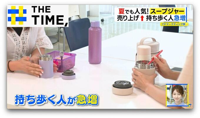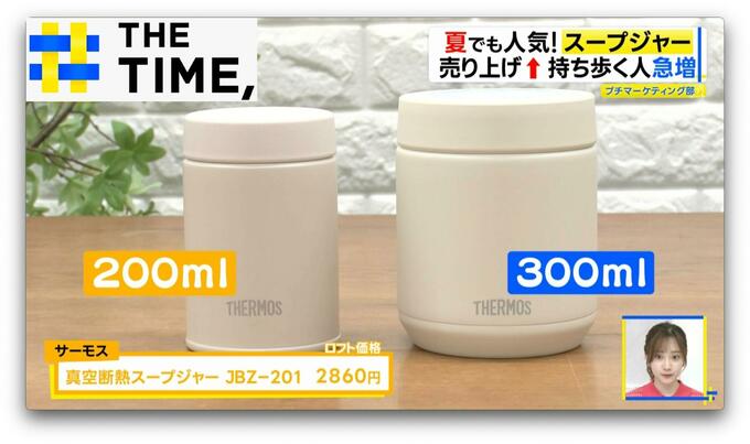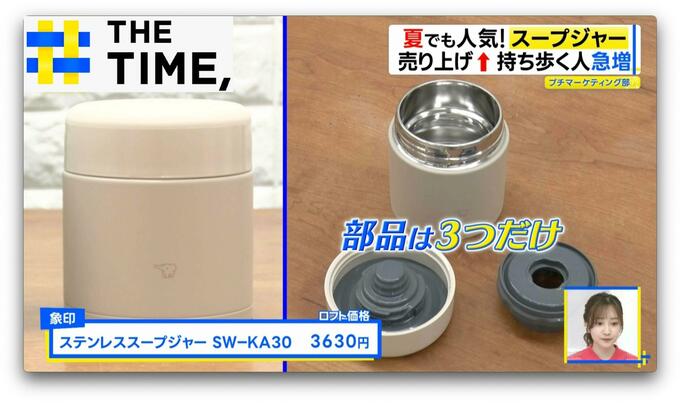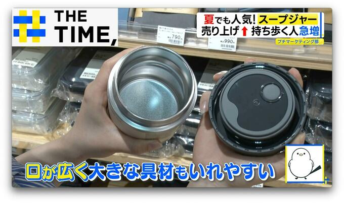 『無印良品』でも、2月に「広口で洗いやすい 保温保冷 スープジャー 」(カラー:シルバー・グレーベージュ/300ml・1690円/430ml・1990円)を発売。口径約7cm(※番組調べ)で大きな具材も入れやすいと好評で、一時期品切れになるほどの人気だといいます。※店舗により在庫状況が異なります