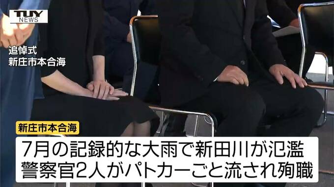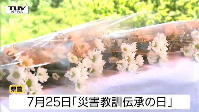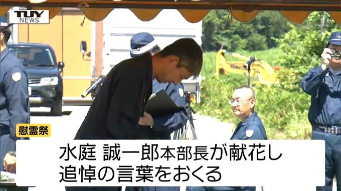 パトカーごと流され警察官が死亡…あの大雨から1年、県警察の幹部が黙とうを捧げる(山形) テレビユー山形 2025年7月25日(金) 11:54 国内 ■きょうの現場 慰霊祭には警察関係者や遺族が参加し黙とうが行われた後、水庭誠一郎本部長が献花し、追悼の言葉をおくりました。 県警では7月25日を「災害教訓伝承の日」としていて、きょうは災害対応の訓練なども行われています。