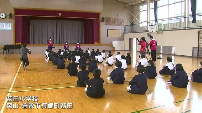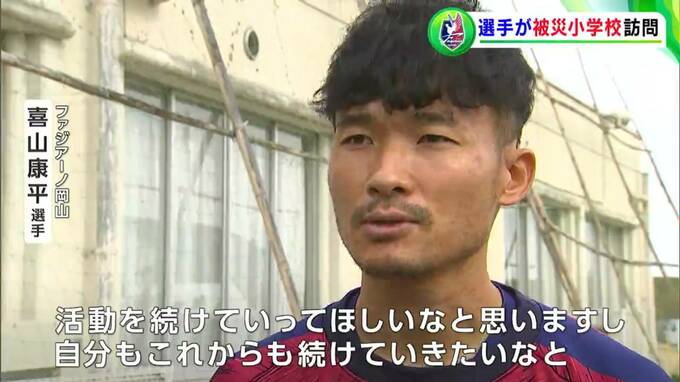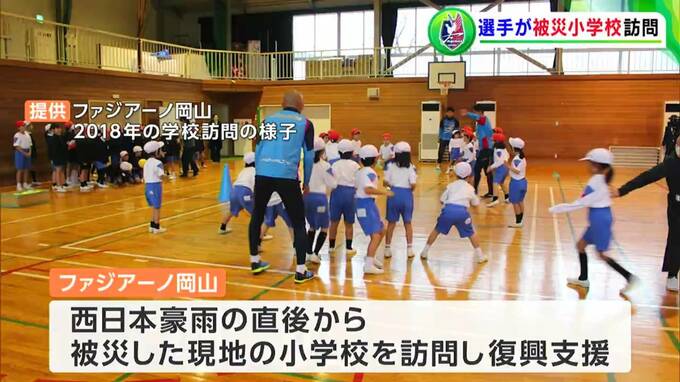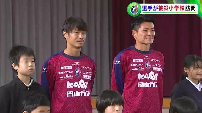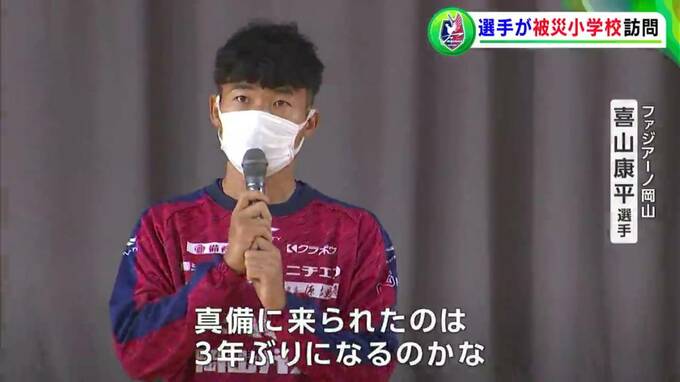新型コロナの影響で3年ぶりとなる対面での西日本豪雨被災地訪問です。サッカーJ2ファジアーノ岡山の選手らが倉敷市の小学校を訪れ子どもたちと交流しました。
