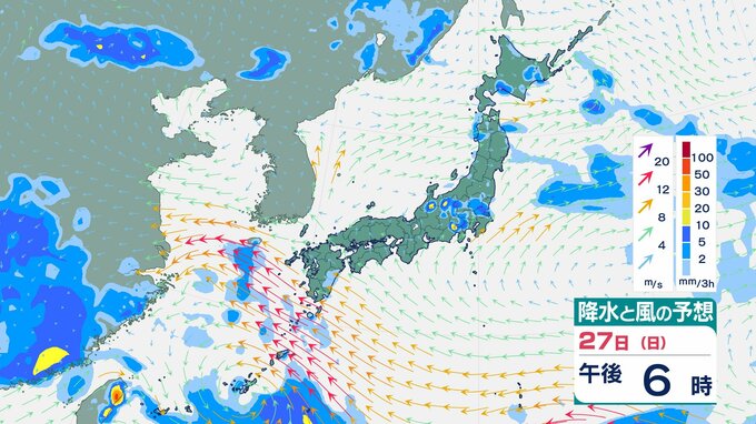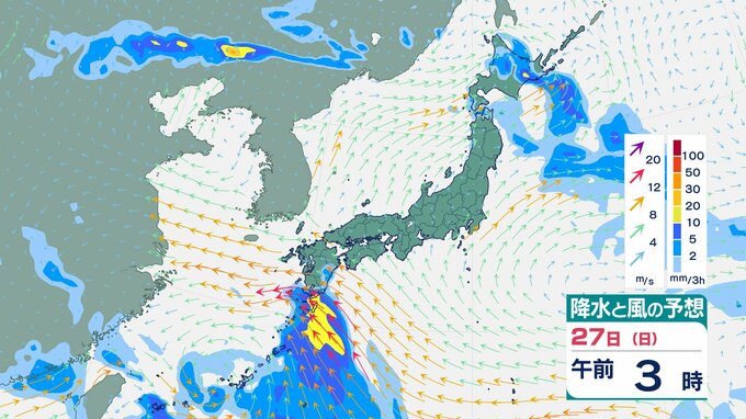 【長期間高温】記録的な高温に 気温の高い状態は今後も更に1か月程度は続く見込み 農作物や家畜の管理、熱中症対策などの健康管理に十分注意を【雨風のシミュレーション】 チューリップテレビ 2025年7月25日(金) 13:01 国内 天気 27日(日)の雨と風のシミュレーション