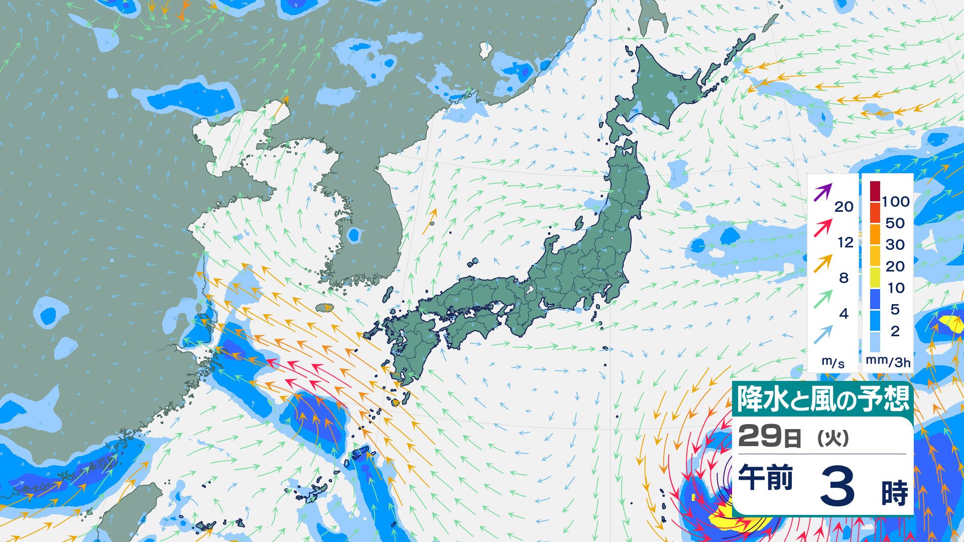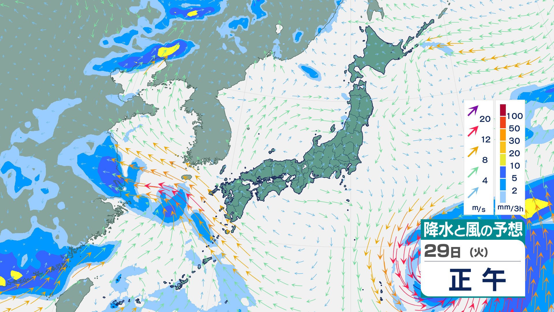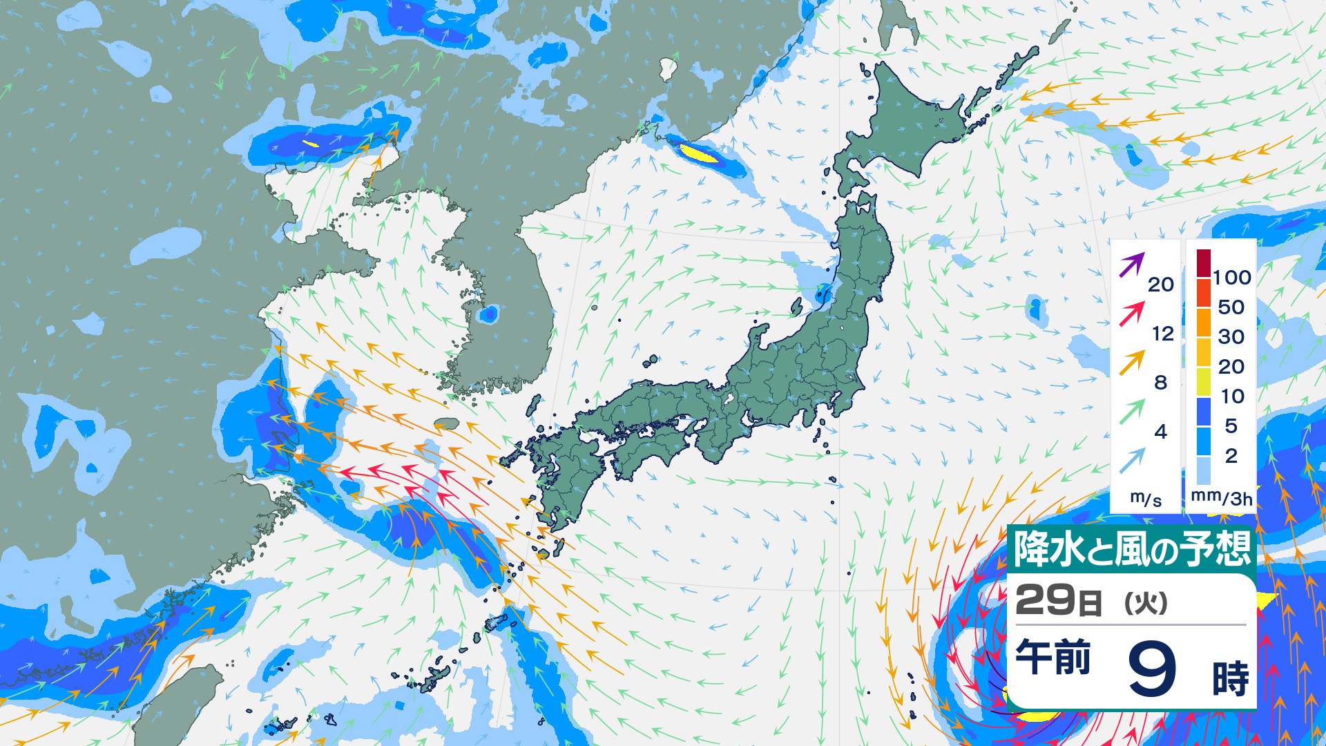 【長期間高温】記録的な高温に 気温の高い状態は今後も更に1か月程度は続く見込み 農作物や家畜の管理、熱中症対策などの健康管理に十分注意を【雨風のシミュレーション】 チューリップテレビ 2025年7月25日(金) 13:01 国内 天気 29日(火)の雨と風のシミュレーション
