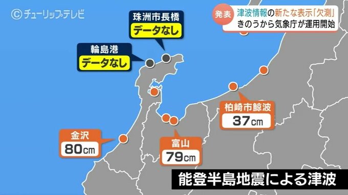 こうした事態に対処すべく、気象庁は24日から津波を正しく観測できない時に「欠測」として発表、チューリップテレビではニュース速報として表示されるようになります。