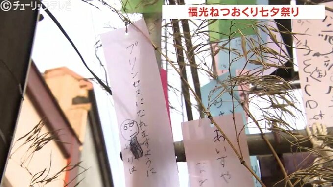 会場となる中心商店街では色とりどりの吹き流しやあんどん、地元の園児たちのかわいらしい願い事が書かれた短冊が通りを華やかに彩っています。