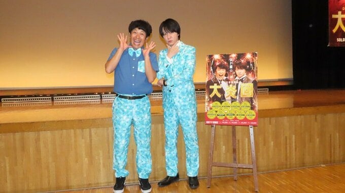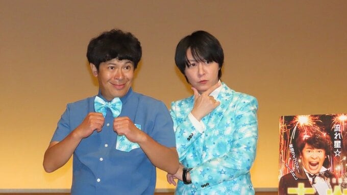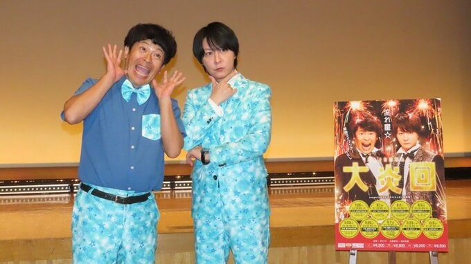 お笑いコンビ「流れ星☆」のたきうえさんとちゅうえいさんが「単独ライブツアーFINAL〜⼤炎回〜」の初日を前に囲み取材を行いました。