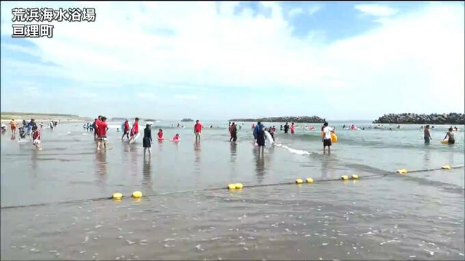 強い日差しが照りつけるなか、午前中から多くの家族連れなどが海に入って楽しんでいました。