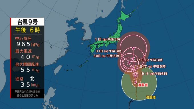 3. 【台風情報】「台風9号」大型で強い勢力へ発達 太平洋を北上…進路は? 中心付近の最大瞬間風速「50メートル」予想 台風の影響が長引くおそれ